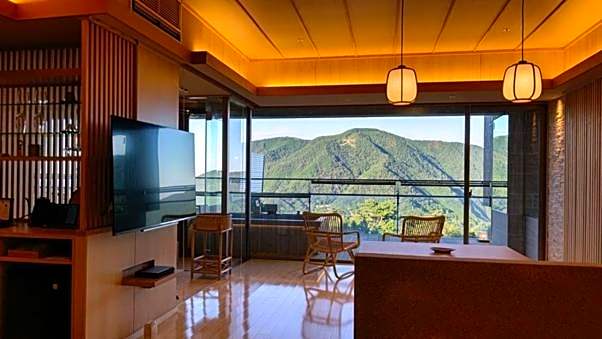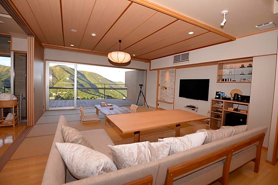 Guests will have a special experience as the family room features a private open-air bath. The spacious family room provides air conditioning, tatami, a balcony with mountain views as well as a private bathroom featuring a bath. The unit offers 2 beds and 3 futons.
